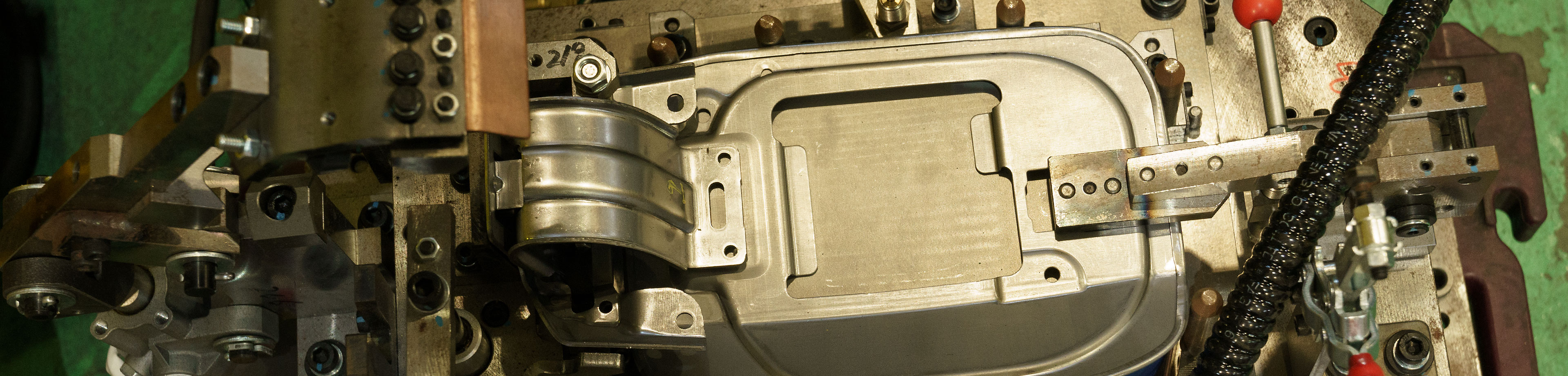 国分プレス工業では、自動車に搭載されるガソリンの給油口部品やエンジン内の制御用部品といった、主にボディー、エンジン、足回り、車軸などで使われる中小プレス部品の数々を、自社内一貫開発体制をもって設計・開発・製造しています。